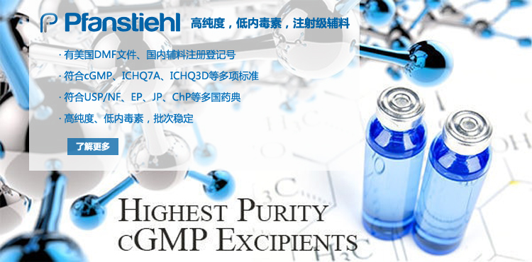“熱烈祝賀Pfanstiehl的注射級甘氨酸Glycine(G-140)喜獲CDE登記號F20250000403, 這是Pfanstiehl產品獲得的第18個CDE登記號!”甘氨酸在醫藥輔料制劑中應用廣泛,, 可作為緩沖劑,增溶劑,穩定劑等,具有諸多優勢。Pfanstiehl秉承一貫高品質理念,為滿足全球生物制藥行業對于高品質甘氨酸的需求,隆重推出的注射級甘氨酸Glycine (G-140), 具有超高純度,超低內毒素,超低金屬殘留的特點,單獨檢測29種金屬離子,并且新增DNA,RNA,DNA酶,RNA酶和脂肪酶,亞硝酸鹽等多項質量指標的檢測,符合多國藥典規定(USP, EP, BP, JPE, ChP),可用于生物治療性藥物和疫苗的生產。產品信息:· 產品名稱:Glycine, High Purity, Low Endotoxin, Low Metals, USP, EP, BP, JPE, ChP (G-140)· 中文名稱:甘氨酸· 分子式:C2H5NO2· 分子量:75.07 g / mol· CAS號:56-40-6· 產品貨號:G-140產品特點: · 超高純度,超低內毒素,超低微生物含量,超低金屬雜質殘留· 質量指標新增DNA,RNA,DNA酶,RNA酶,脂肪酶和亞硝酸鹽檢測· 符合多國藥典:USP, EP, BP, JPE, ChP· 符合ICH Q3D標準· 符合GMP標準· 已獲DMF和CDE登記號 產品應用:· 緩沖劑· 穩定劑· 增溶劑如果您對Pfanstiehl注射級別Glycine G-140感興趣,歡迎聯系Pfanstiehl 中國區代理商北京西美杰科技有限公司獲得如下詳細的產品概況說明文件和測試樣品。Pfanstiehl Inc.最新產品系列如下,歡迎聯系北京西美杰科技有限公司獲取100g裝免費樣品。北京西美杰科技有限公司為Pfanstiehl中國代理,為客戶提供完善的技術支持與售后服務。歡迎撥打西美杰客服電話400-050-4006或者登陸網站www_xmjsci_com.fcghsjc.com了解更多信息。 更多>